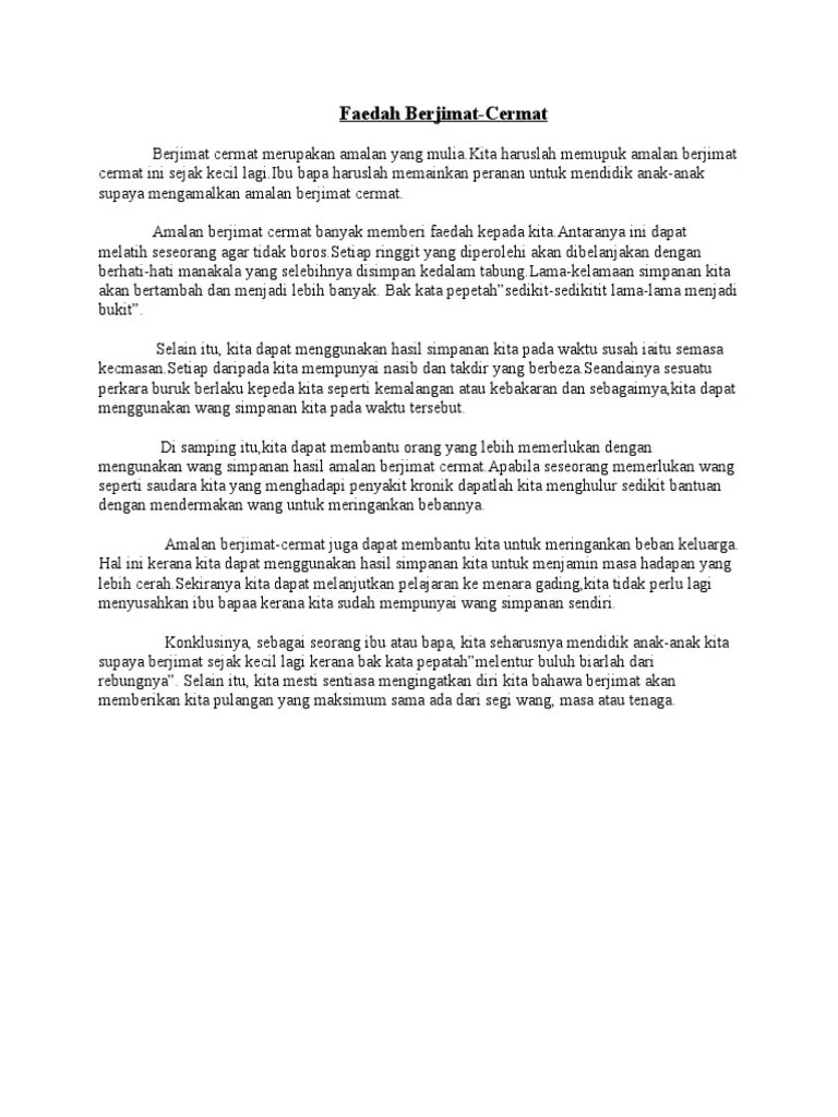 Academia.edu uses cookies to personalize content, tailor ads and improve the user experience. Persepsi masyarakat terhadap wang adalah sebagai satu kayu pengukur dalam penentuan kejayaan kehidupan seseorang itu. Tauke lim seorang yang amat berjimat cermat dalam perbelanjaan. Kebaikan amalan menabung dalam kalangan masyarakat (karangan).